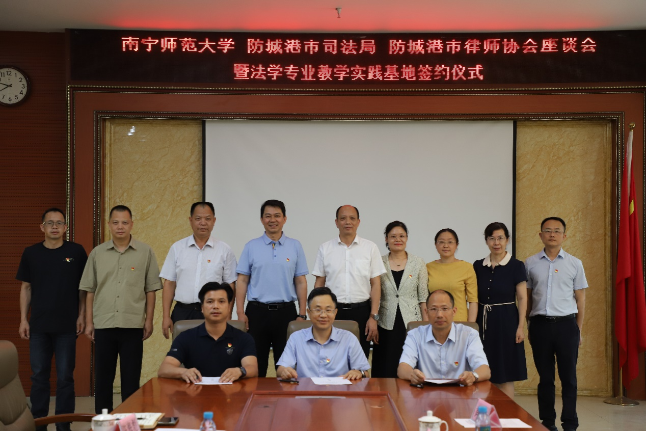 为深化校地合作、推动法治人才培养模式创新,5月14日,公司与防城港市司法局、防城港市律师协会共建实习实训基地签约挂牌仪式在防城港市司法局 举行,经理尹文嘉教授、副经理卢明威教授、法律系主任陈文琼教授、龚战梅教授、黄琨老师参加了此次签约仪式。本次仪式标志着三方在法律实践教学、专业人才培养等领域的合作迈出实质性步伐,为构建“理论+实践”一体化育人体系奠定了坚实基础。