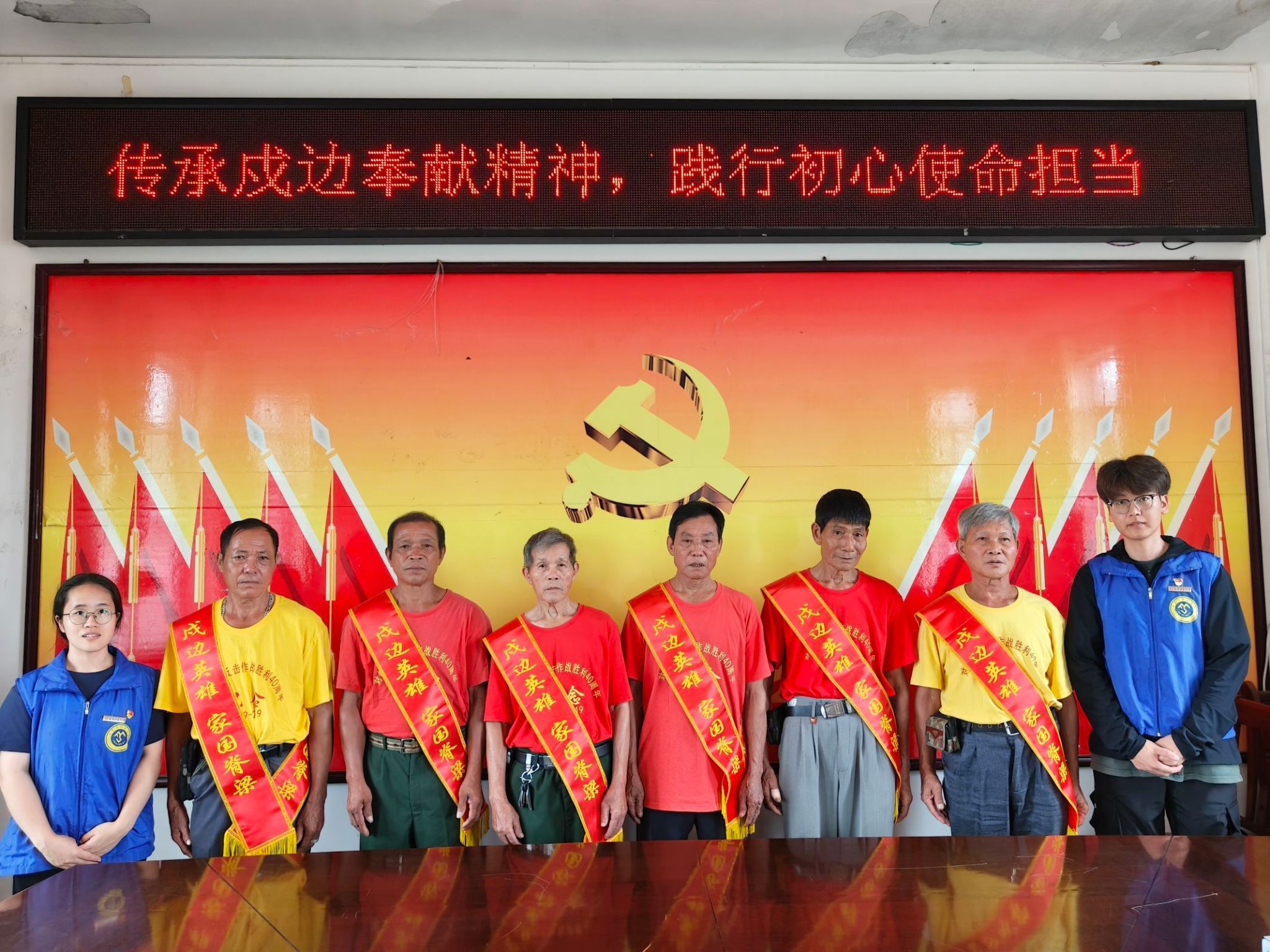 7月20日,我院暑期“三下乡”社会实践团赴广西崇左市宁明县桐棉镇那么村,开展“致敬戍边英雄”口述史采集工作。在太阳成tyc7111cc党委指导下,由8名师生党员组成的实践团调研组,对曾参与1979年边境自卫反击作战的6位民兵英雄进行深度口述史访谈,通过影像记录、文字整理等方式保存这段珍贵的卫国记忆。