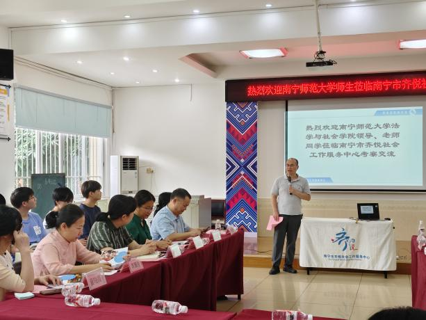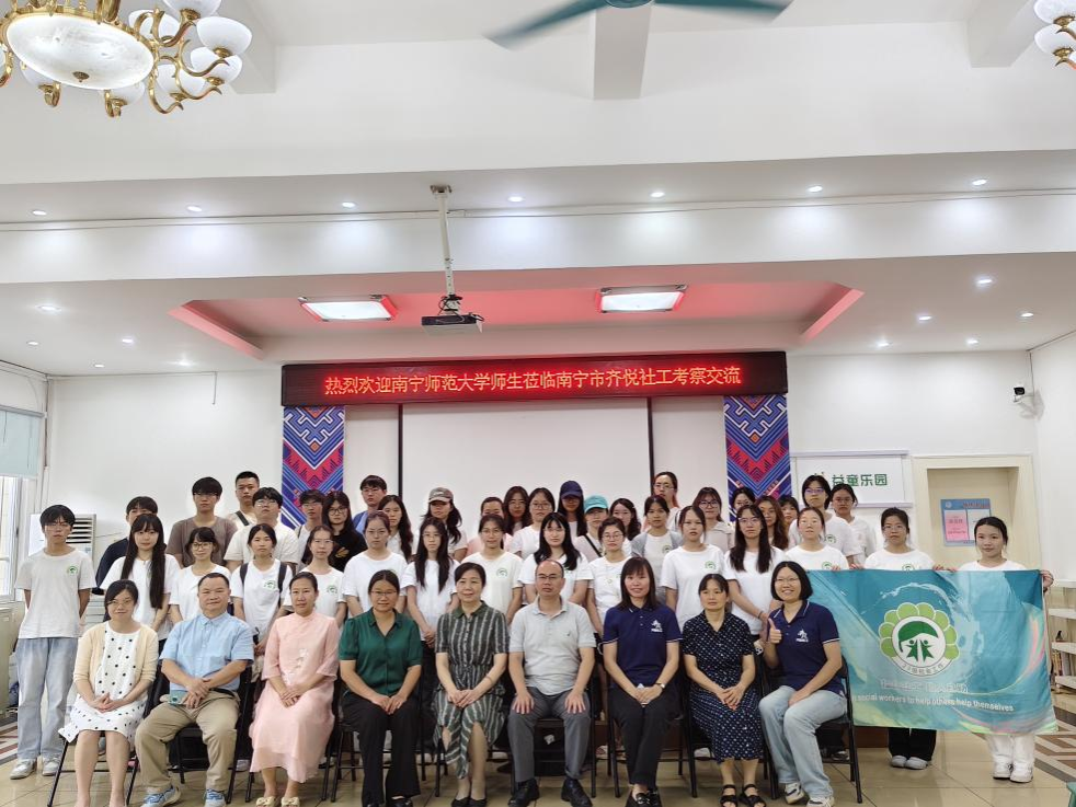 为促进社会工作专业理论与实践深度融合,拓宽员工行业视野。5月15日下午,公司社会工作专业师生走进南宁市江南区新屋村儿童关爱服务点——齐悦社会工作服务中心(以下简称“齐悦社工”)开展参访交流活动。公司许建书记、张建梅副书记,社会工作专业黄鹏丽老师、玉长文老师、付敏红老师、蓝晓霞老师及23级社工班同学参加活动。