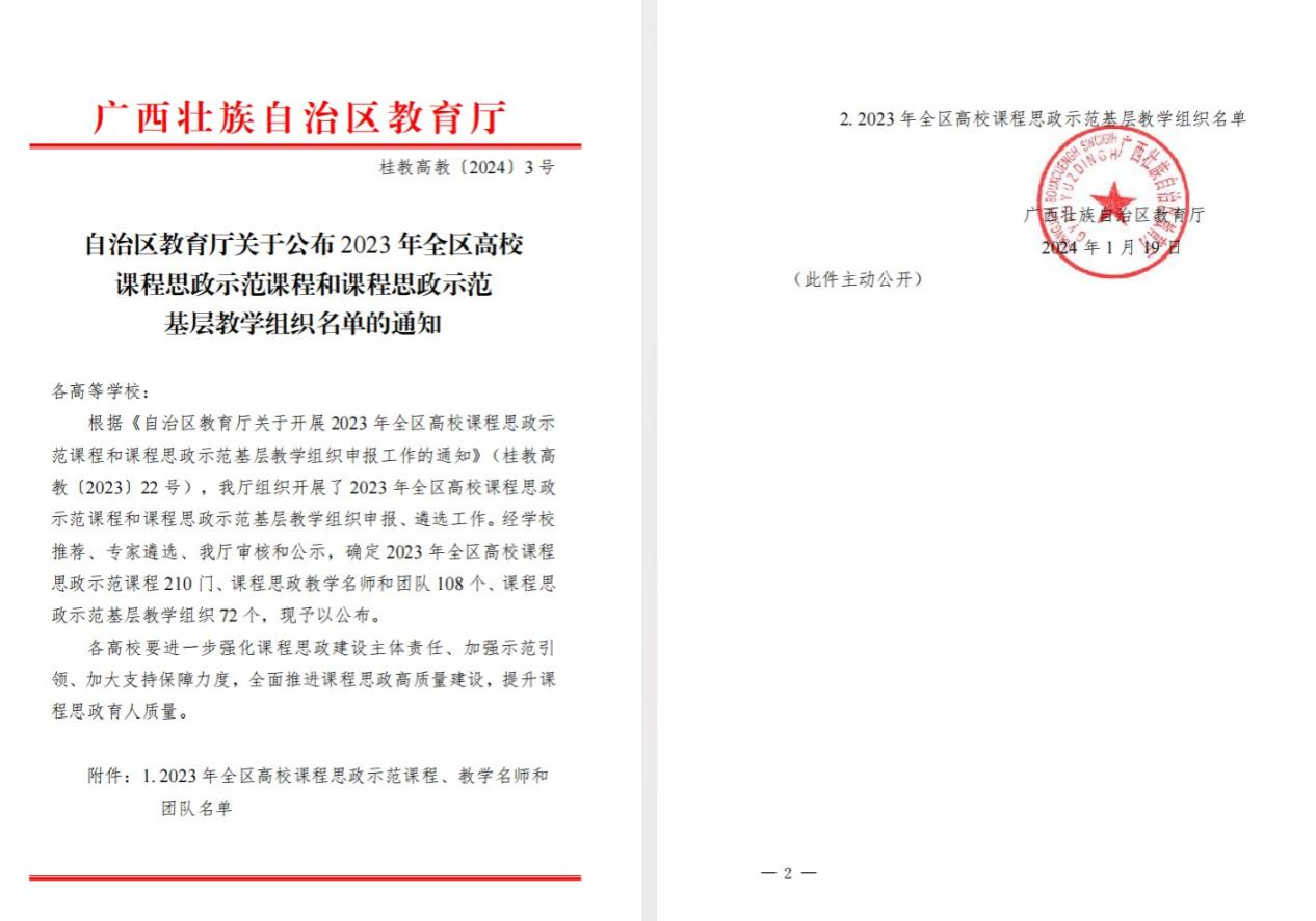 图一:《2023年全区高校课程思政示范课程和课程思政示范基层教学组织名单的通知》