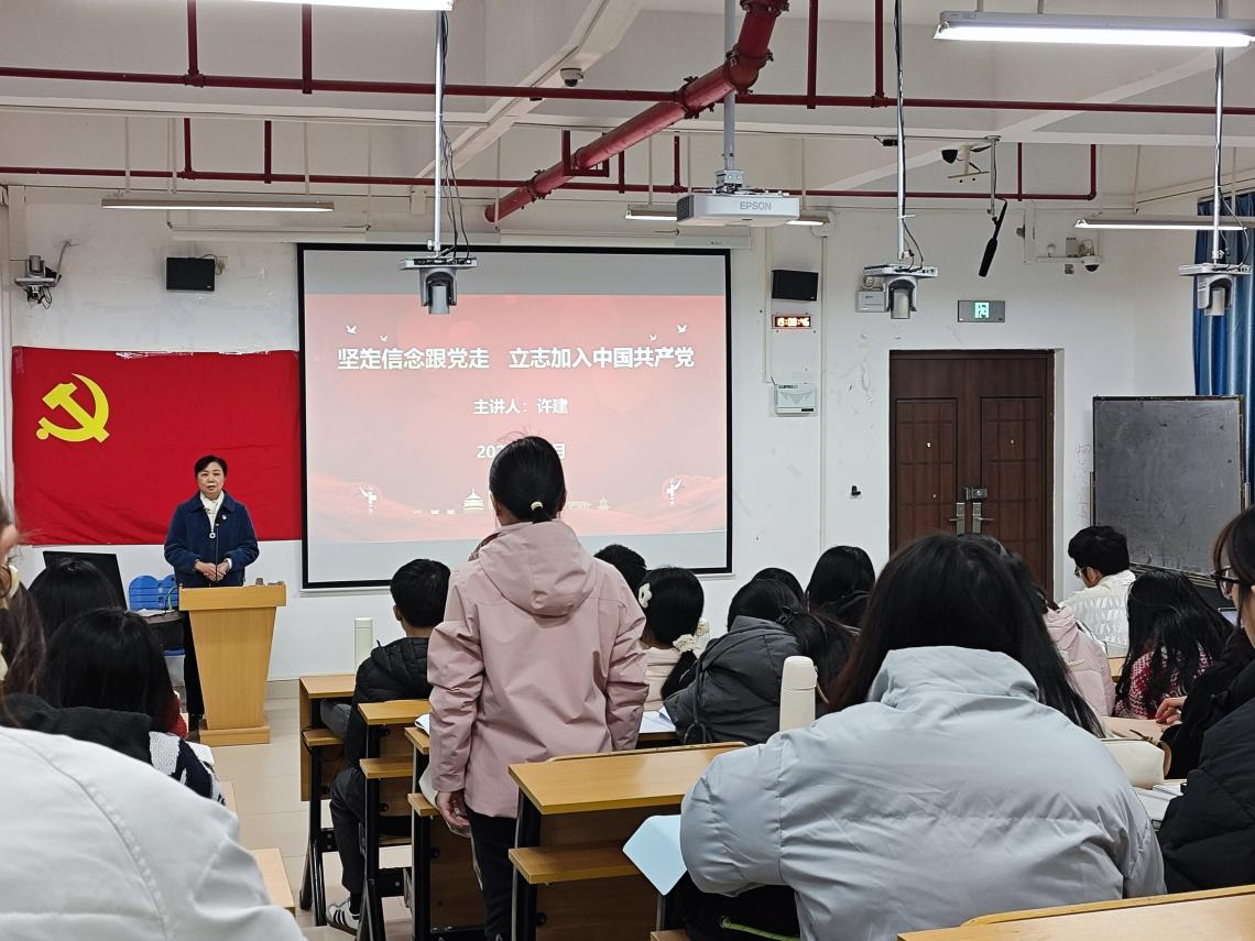 在第一讲课中,许建书记先由“为什么戴党员徽章”这个问题同各位同志进行讨论,并引出本次发展对象党校培训会的主题:“坚定信念跟党走,立志加入中国共产党”。紧接着许书记结合自身经历及长征时期的党史故事,围绕中国共产党能够在短时间内强大起来的原因、新时代党坚强的领导核心作用、面临百年未有之大变局下党的主张与实践以及如何坚定的听党话、感党恩、跟党走等方面进行讲述。